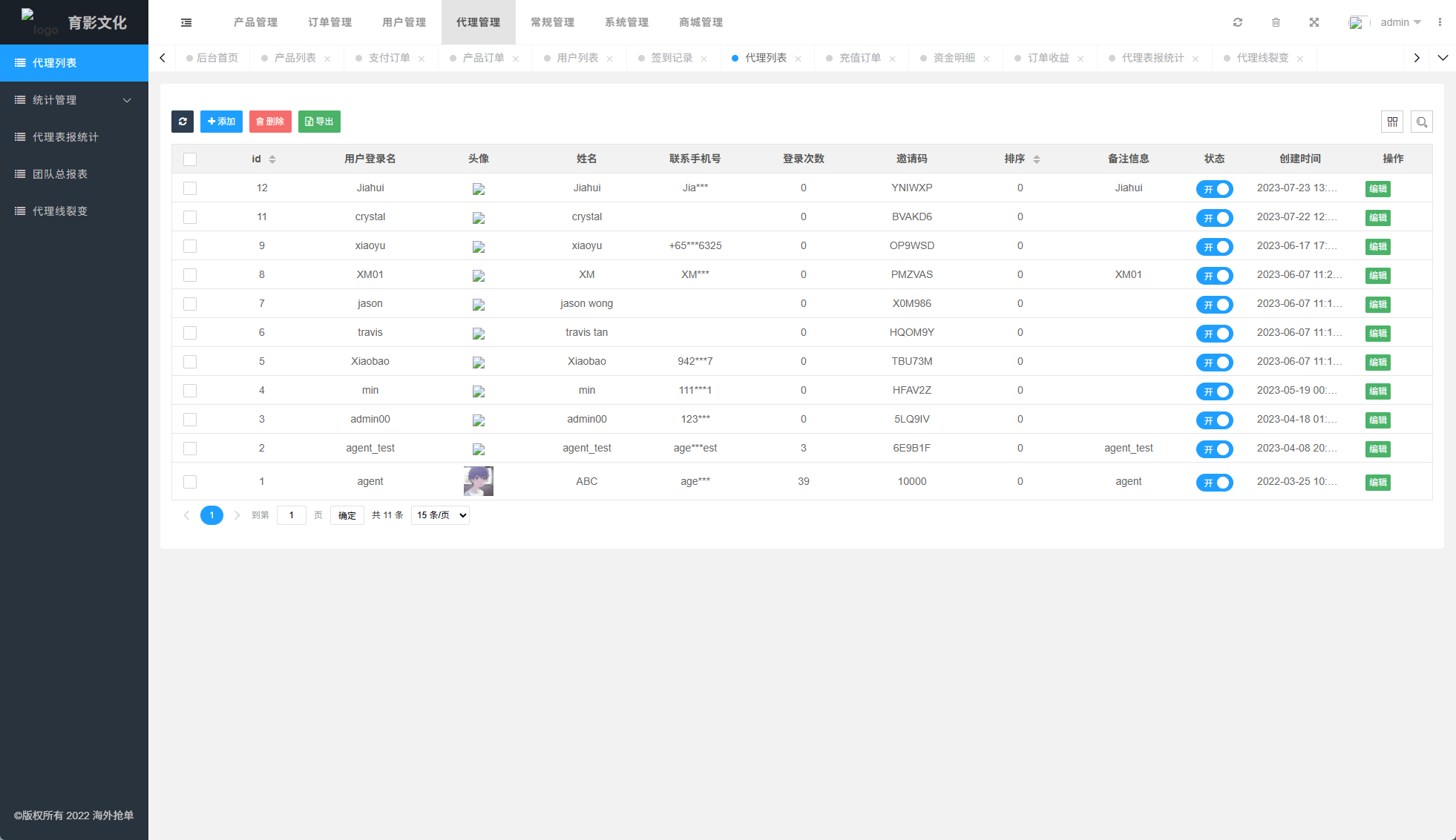 系统功能:抢单开关、预设订单、重置订单、签到、代理等功能