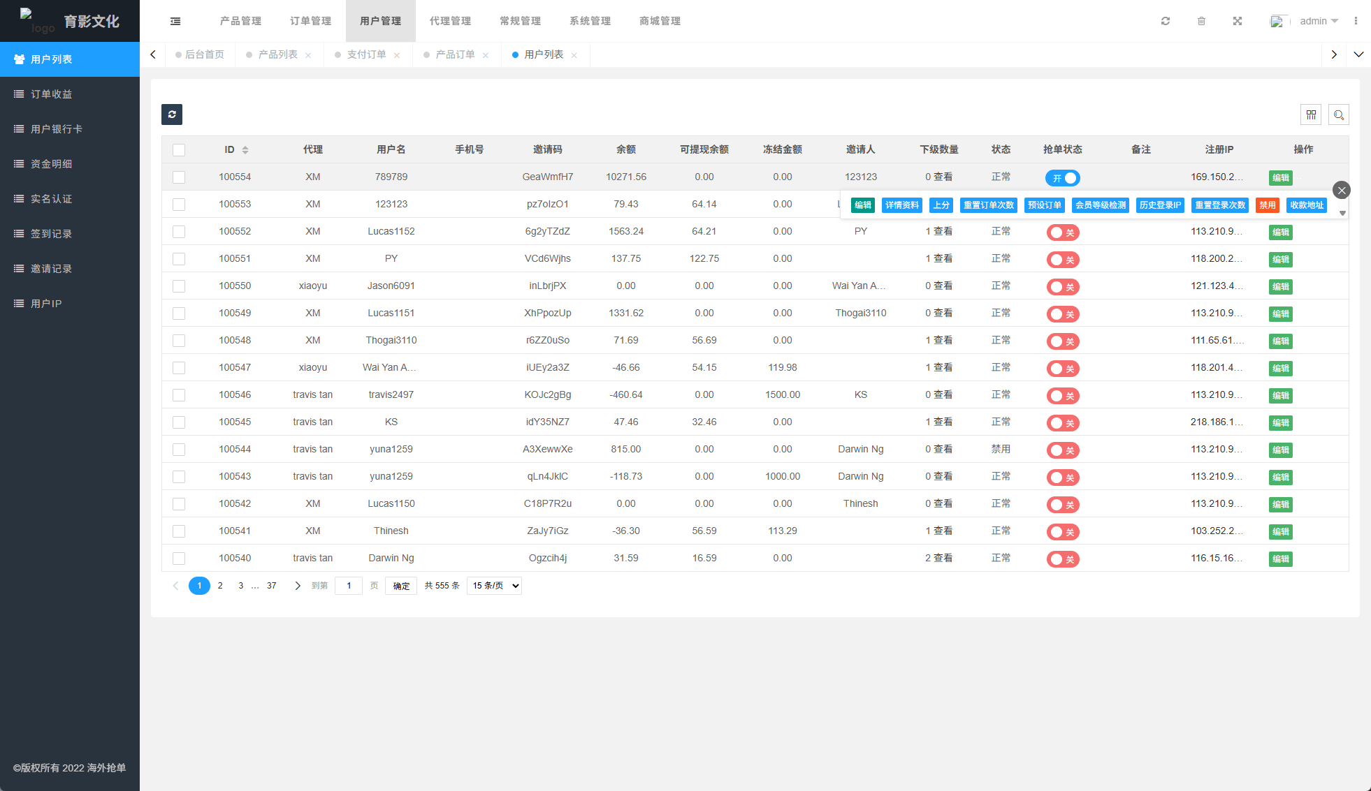 多语言抢单刷单系统/预设订单/重置订单/签到